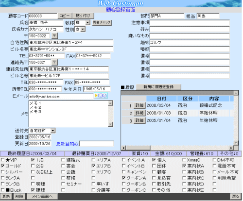 顧客管理ソフト・クラウド顧客管理ソフト「WEBカスタマン」の詳細説明のほか、